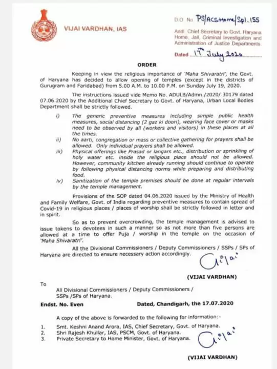 महा शिवरात्रि को मंदिर खोलने की दी छूट